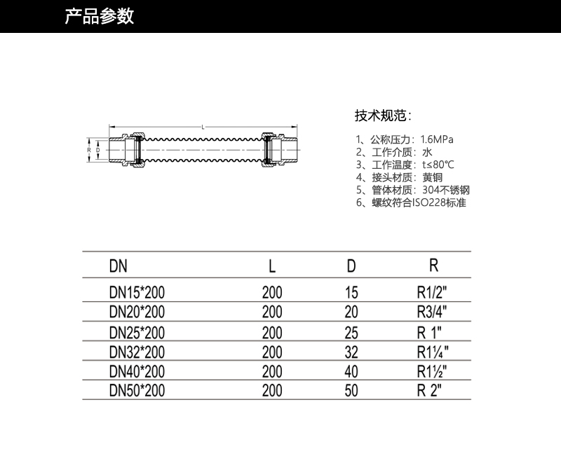 、公称压力:1.6MPa 2、工作介质:水 3、工作温度:t≤80℃ 4、接头材质:黄铜