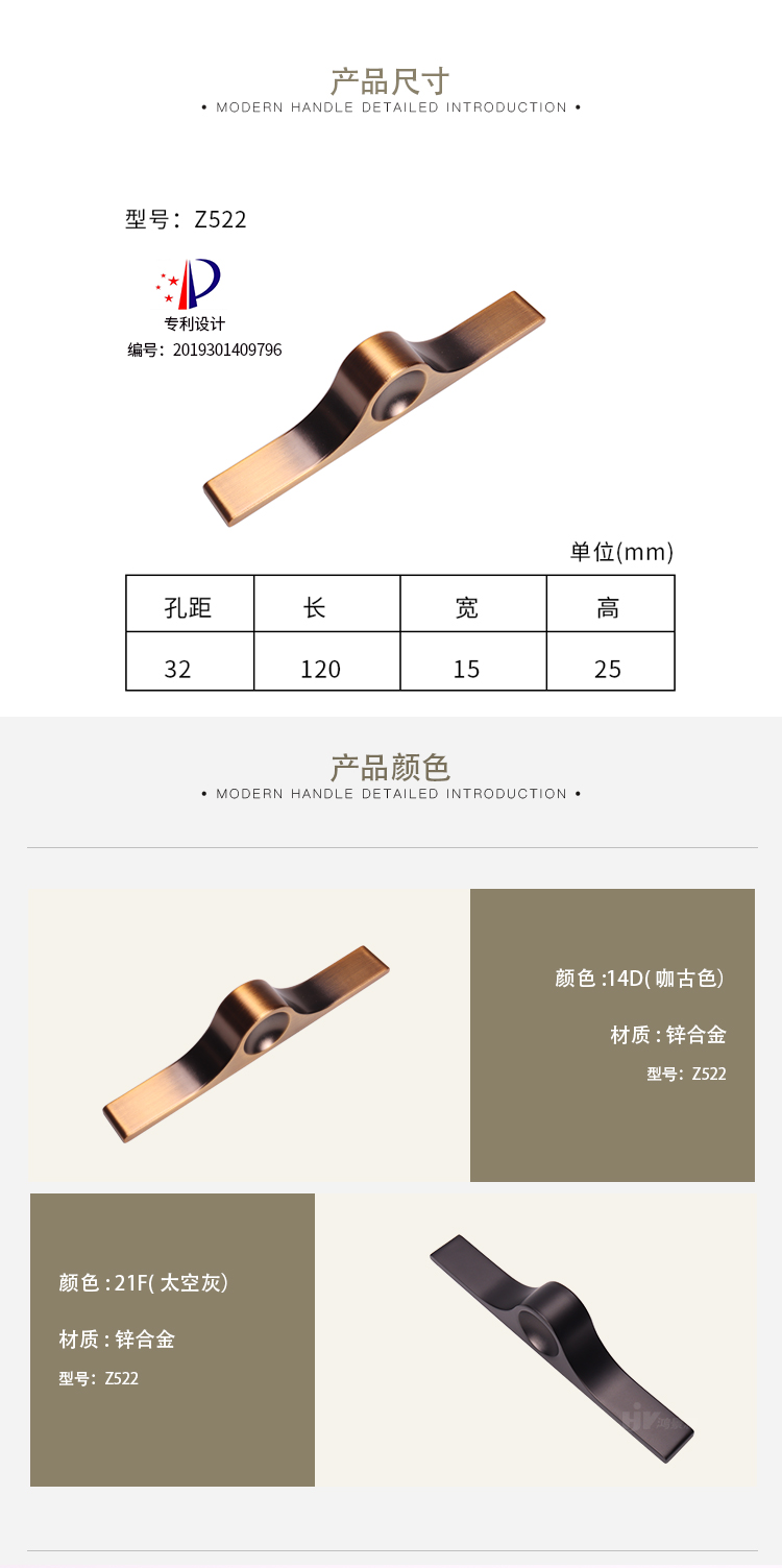 采用澳洲锌合金原材料,电镀表面,创新设计,Z522款拉手。